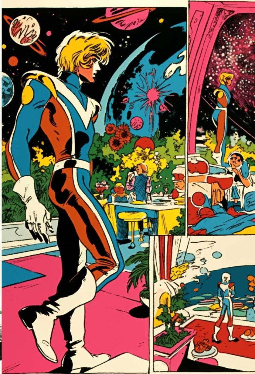 generiert nach Stilvorlagen aus PERRY Nr. 38-43, mit Referenzen auf Esteban Maroto, Alex Niño, Jose Gonzales. niji-Parameter, sref 2526862084. Stil zwar nicht identisch mit Pop-Art-PERRYs, aber farblich und kompositorisch durchaus in der Tradition.