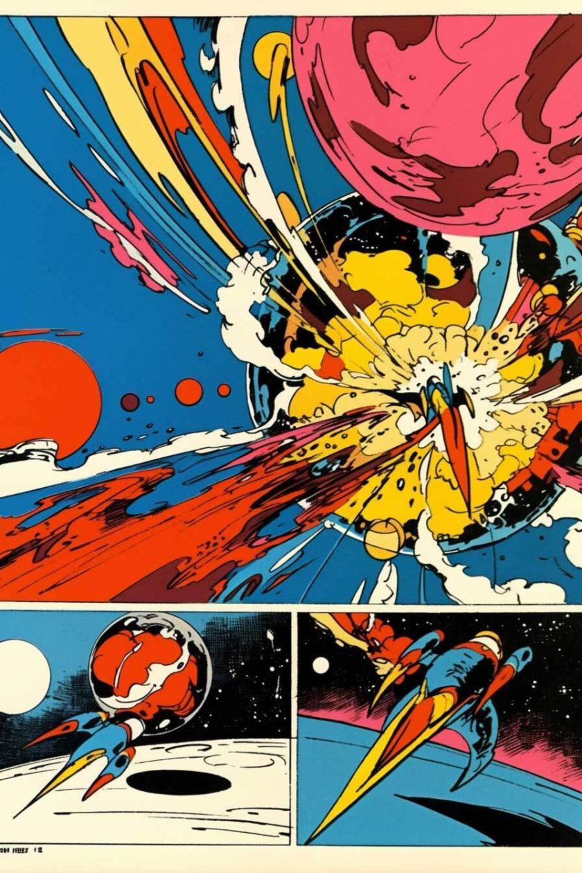 generiert nach Stilvorlagen aus PERRY Nr. 38-43, mit Referenzen auf Esteban Maroto, Heinz Edelmann, Jose Gonzales. niji-Parameter, sref 2526862084, 2526862084. Stil zwar nicht identisch mit Pop-Art-PERRYs, aber farblich und kompositorisch durchaus in der Tradition.