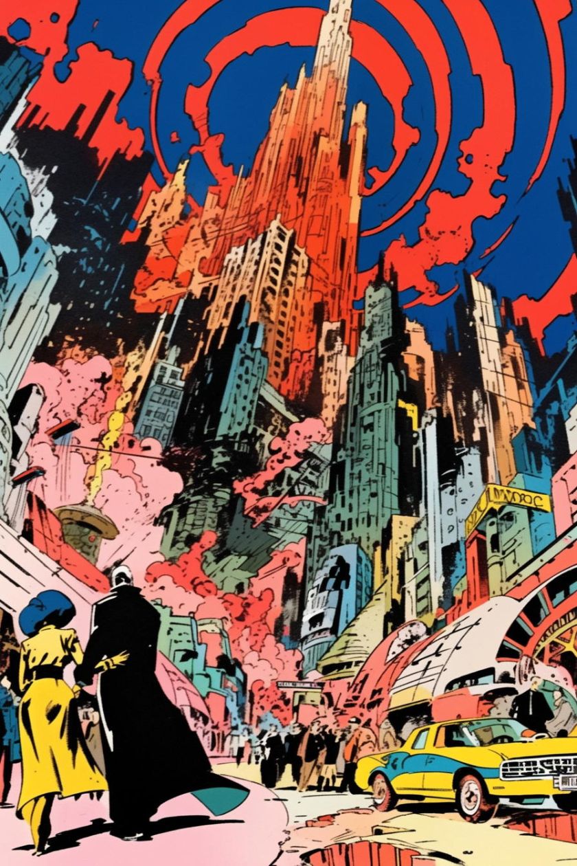 generiert nach Stilvorlagen aus PERRY Nr. 38-43, mit Referenzen auf Esteban Maroto, Heinz Edelmann, Jose Gonzales. niji-Parameter, sref 2526862084, 2526862084. Stil zwar nicht identisch mit Pop-Art-PERRYs, aber farblich und kompositorisch durchaus in der Tradition.